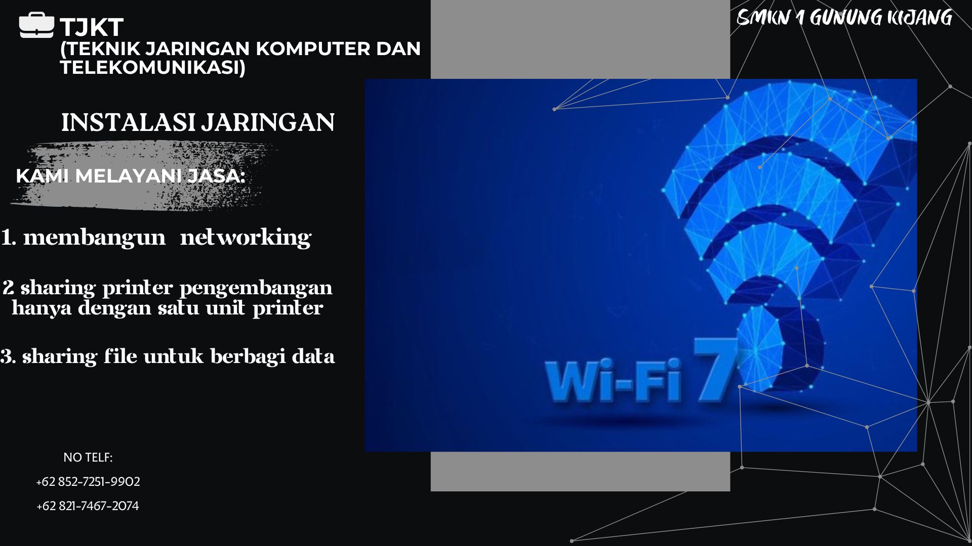 Produk atau Jasa yang ditawarkan jurusan Teknik Komputer dan Jaringan (TKJ) atau Teknik Jaringan Komputer dan Telekomunikasi (TJKT), siswa dapat memiliki pengalaman belajar yang lebih bermakna, relevan, dan mempersiapkan mereka untuk menjadi profesional yang siap bersaing di era digital. Adapaun manfaat meliputi :